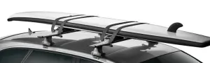 Versatile surf and SUP rack that is ideal for carrying one or two boards on any type of roof rack. Telescoping design delivers a custom fit for board widths from 70 to 86 cm/28 to 34 in. Dual loading allows for transport of up to two boards with maximum stability. Soft, weather-resistant padding protects boards during transit. Strong, durable load straps with adjustable wrap-around padding on straps protect board from strap abrasion.