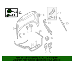 Deck Lid Lock. Deck Lid Release Solenoid. Handle to open liftgate. w/o Rear camera. And Amplifier keys. switch. Actuator Assembly. Deck Lid Solenoid. Handle, Outside. Liftgate Latch Handle. MECHANISM. Microswitch. Opener Assembly. Fits CC, Eos, Golf, Golf R, GTI, Passat, R32, Rabbit Eos. Eos w/o Rear View Camera. GTI. R32. w/o Rear camera. Eos. GTI. R32. w/o Rear view camera.